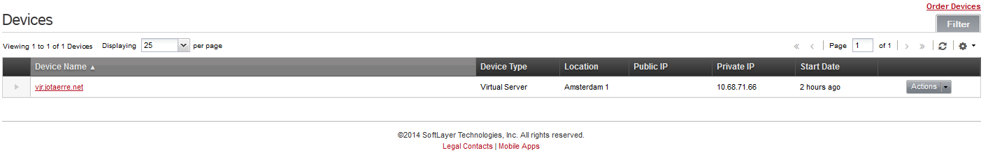 Pasando por las opciones de: Device / Devide List, tendremos la máquina creada, así como la IP pública por la que podemos acceder a nuestro nuevo sistema: