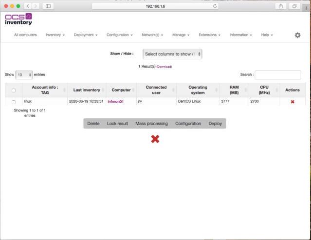 ocsinventory-agent –server http://10.0.0.10/ocsinventory